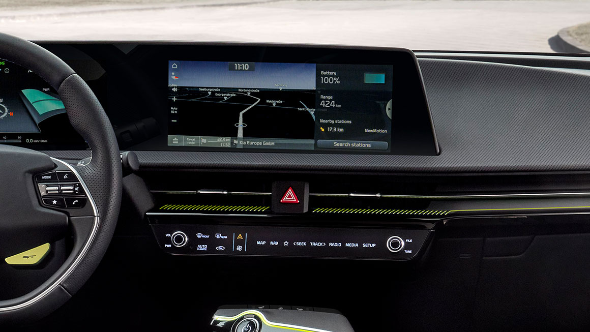 Angenehme Fahrten bedeuten, dass alles perfekt auf deine Wünsche und Bedürfnisse abgestimmt ist. Von extragroßen Displays über beeindruckenden Sound bis hin zum Laden deiner Geräte – der Kia EV6 GT ist mit smarter Technologie ausgestattet, die ein volldigitales Erlebnis im Innenraum bietet.